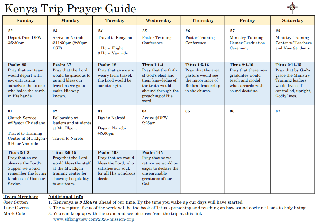 2026 SLF Mission Team Pictured Above: Lane Owens, Mark Cole and Pastor Joey Sutton